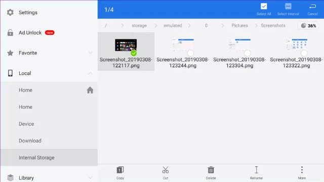 الآن بعد أن التقطت شاشة على تلفاز أندرويد، سوف ترغب بمشاهدتها أو نقلها إلى حاسوبك أو إلى هاتفك الذكي، وهنا لعرض لقطات الشاشة، قم بتنزيل ES File Explorer أو أي مستكشف ملفات آخر على التلفاز، ثم انتقل إلى الصفحة الرئيسية وصولًا إلى الصور وأخيرًا إلى خيار سكرين شوت، ومن هناك يمكنك عرض الصور وكذلك حذفها.