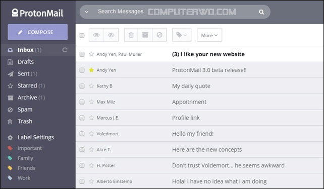 يمكن إنشاء حسابات البريد الإلكتروني ضمن هذه الخدمة دون التنازل عن أي معلومات خاصة على الإطلاق، تتخلف واجهة ProtonMail عن بعض التصميمات الأكثر حداثة قليلاً ولكنها جيدة بما يكفي، كما توفر تطبيقات للأندرويد والآيفون أيضاً، تمتاز الخدمة بأنها مجانية ومفتوحة المصدر لكنها لا توفر سوى 500 ميجابايت للتخزين يُمكن توسعتها بالخطط المدفوعة.