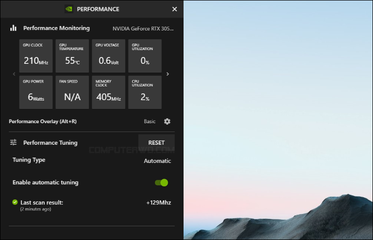 يحتوي برنامج GeForce Experience ميزة تُدعى Automatic Tuning والتي تسمح برفع تردد كارت الشاشة للحصول على أداء أفضل، بشكل آمن، بحيث لا تحدث ضرر بمكونات البطاقة الرسومية. تعتمد الميزة على الخوارزميات لتحديد أفضل إعدادات ممكنة لكسر السرعة بناءً على كارت الشاشة الخاص بك. يبدأ الأمر تدريجيًا ويتم قياس ومتابعة حالة كارت الشاشة باستمرار لضمان ثباته وفي المرحلة التي يُظهِر الكارت عندها شيئًا من عدم الاستقرار، يتم تحديد السرعة القصوى والثبات على أقرب مرحلة مستقرة منها. بفضل هذه الخوارزمية، المعروفة بـ Nvidia GPU Boost 4.0 وعلى عكس الطرق التقليدية الأخرى، فإن كسر السرعة يتم بناءً على مستويات محددة مُسبقًا من الجهد، وهذه الطريقة تسمح بتحقيق سرعات أعلى عند درجات حرارة مرتفعة، والأهم من ذلك الحفاظ على أمان الكارت، وبهذا تتحقق المعادلة الصعبة وتحصل على أفضل أداء ممكن. يمكنك قراءة موضوعنا المفضل حول هذه الميزة وطريقة تفعيلها.
