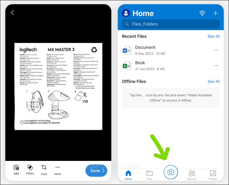 على أيقونة "الكاميرا" الموجودة بالأسفل ثم وجهه كاميرا الهاتف نحو المستند